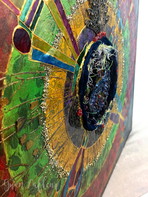 Here's this month's project - a mixed media mandala-inspired panel with a funky, boho spin.