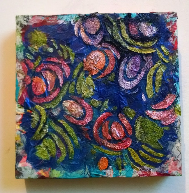 repurposed, experimental canvas board that already had paint and texture on it
