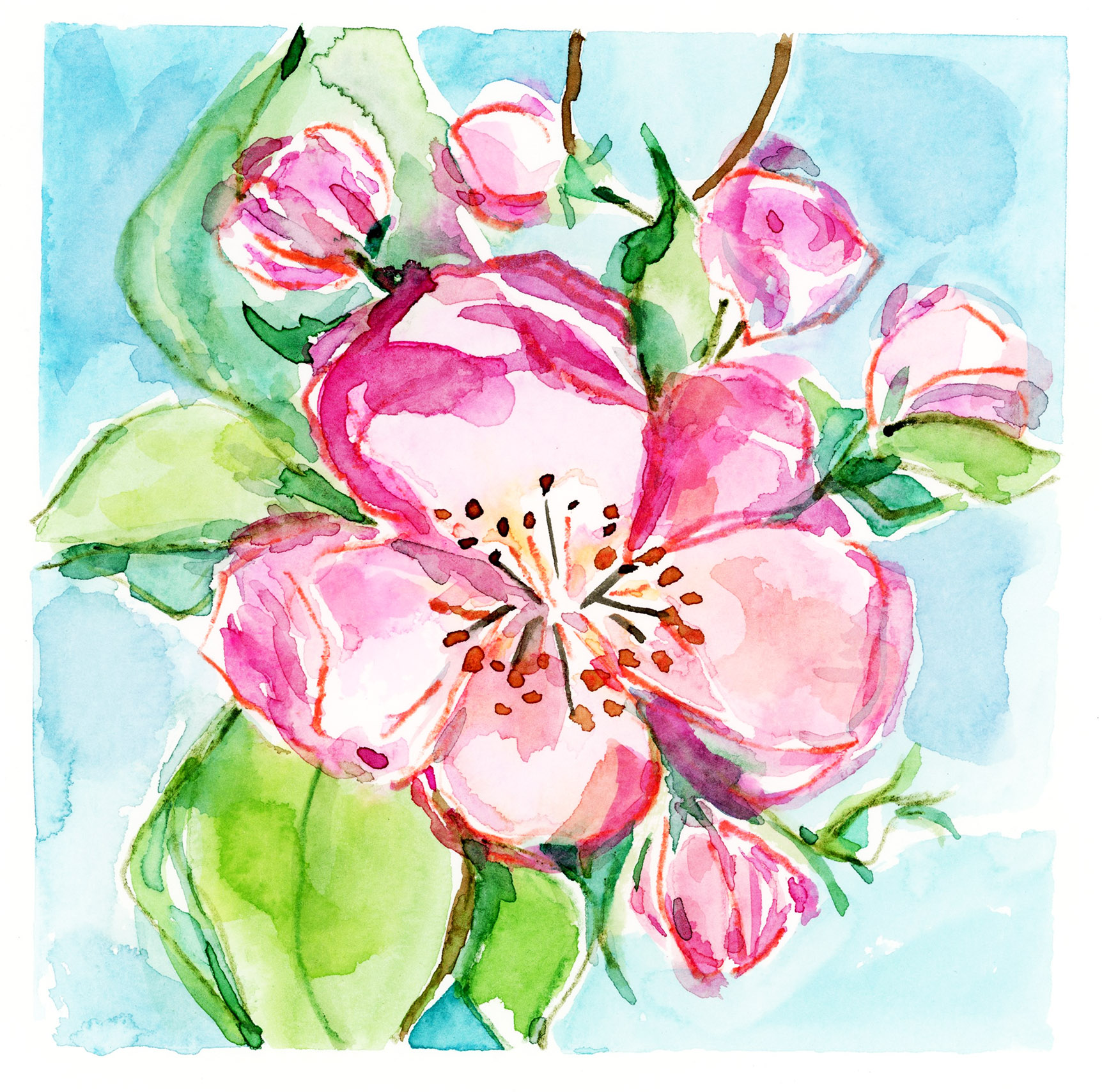 I love to paint cherry blossoms, both the full tree in bloom and the individual blooms. They are so vibrant and cheerful. Although this stencil could be used for any blooming branch by altering the color palette, my artwork sample is inspired by the traditional bright pink flowers.