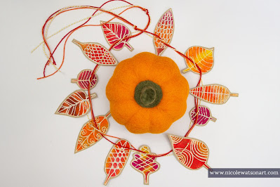 1. Less is more! Don't over-saturate your applicator.My favorite fall leaves are the ones with spots of color, so when my leaves were finished, I splattered leftover paint on them.